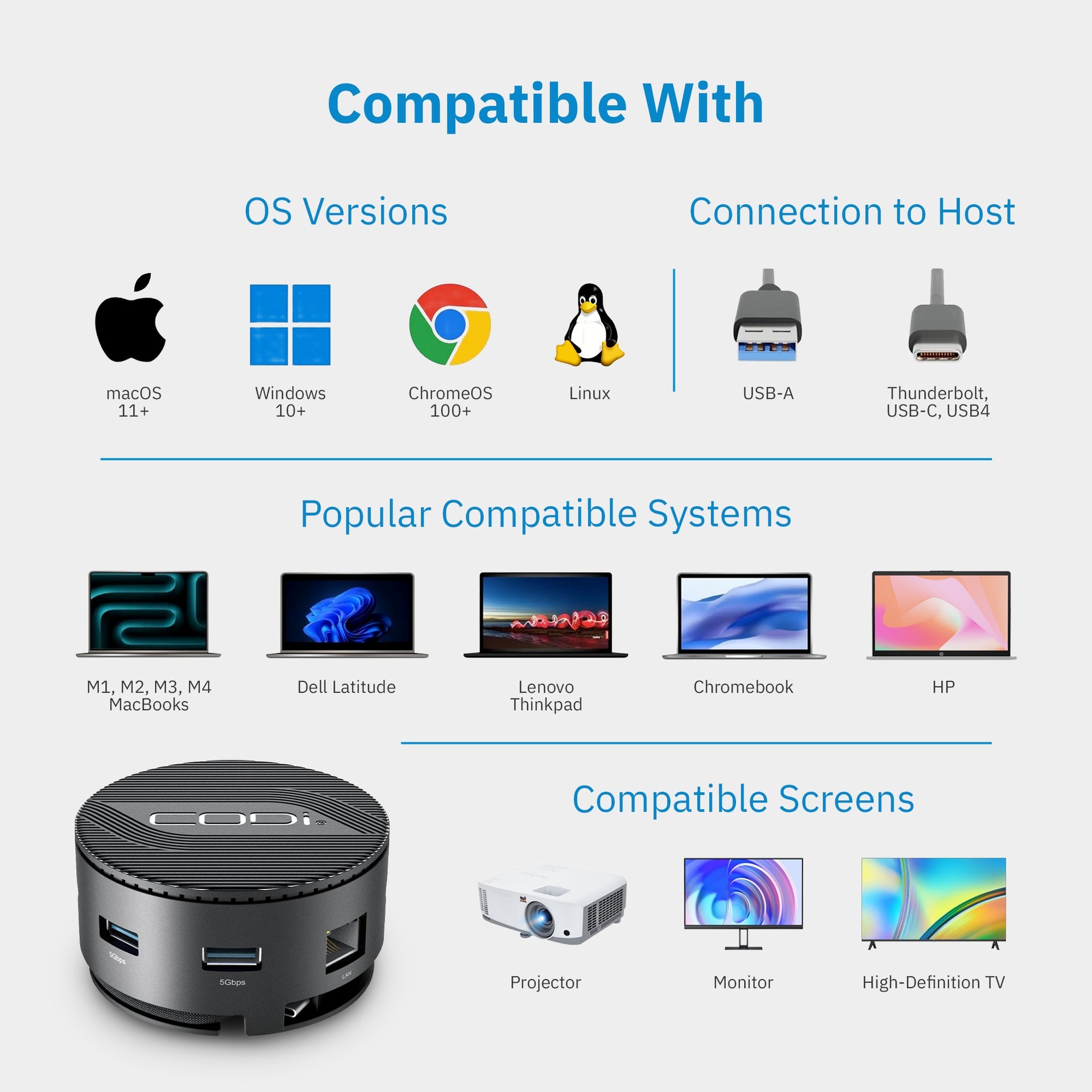 Maximize operational efficiency and optimize your workflow with the CentroM3 Multi-Port USB-C Docking Station from CODi. This advanced dock offers a world of effortless connectivity, productivity, and portability.